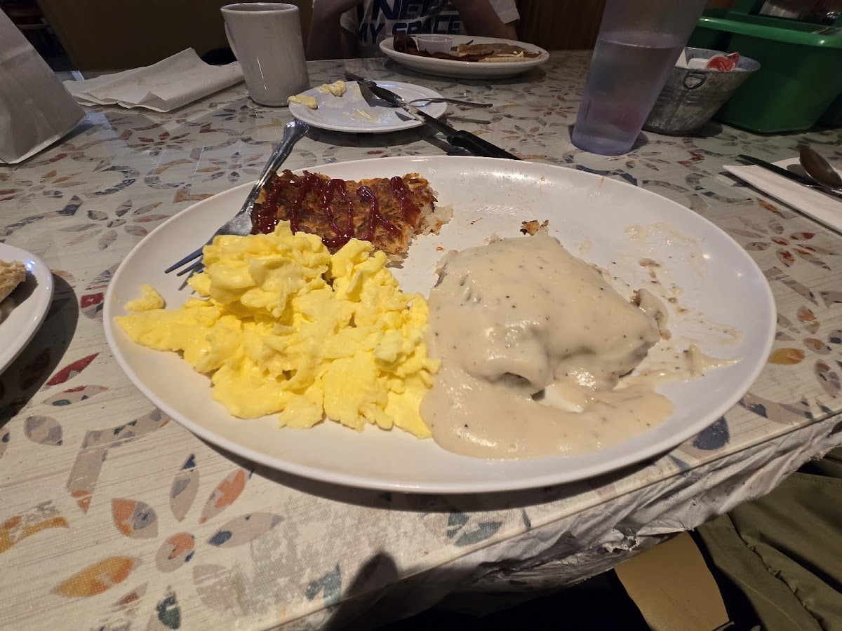 My son and I recently visited for an enjoyable breakfast before departing for a visit to Grandma's house. We enjoyed an invigorating wall through the local neighborhoods before sitting down for our meal. My son had previously visited with his recently departed Pop-pop, so this was a great trip down memory lane. The restaurant is clean, plenty of parking, spacious dining area, smells like yummy food cooking. My son had pancakes and bacon. I had biscuits and heavy with chicken fried steak. Our waitress was overly kind and attentive. She even knew Pop-pop! Our experience was so tremendous. Highly recommended‼ Also, be sure to get the fudge!